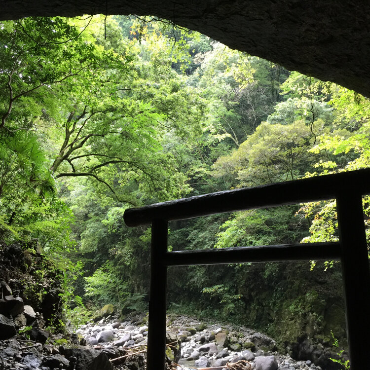 天岩戸神社西本宮から岩戸川に沿って徒歩で約10分、天照大神(アマテラスオオミカミ)が岩戸にお隠れになったさい、天地暗黒となり八百万(やおよろず)の神がこの河原に集まり神議されたと伝えられる大洞窟。別名「仰慕ヶ窟(ぎょうぼがいわや)」とも呼ばれています。以前は社のみがあり信仰の対象となっていたが、いつのまにか祈願を行う人たちの手によって石が積まれていくようになりました。現在では無数にある積まれた石が天安河原の神秘的かつ幻想的な雰囲気を一層引き立てています。