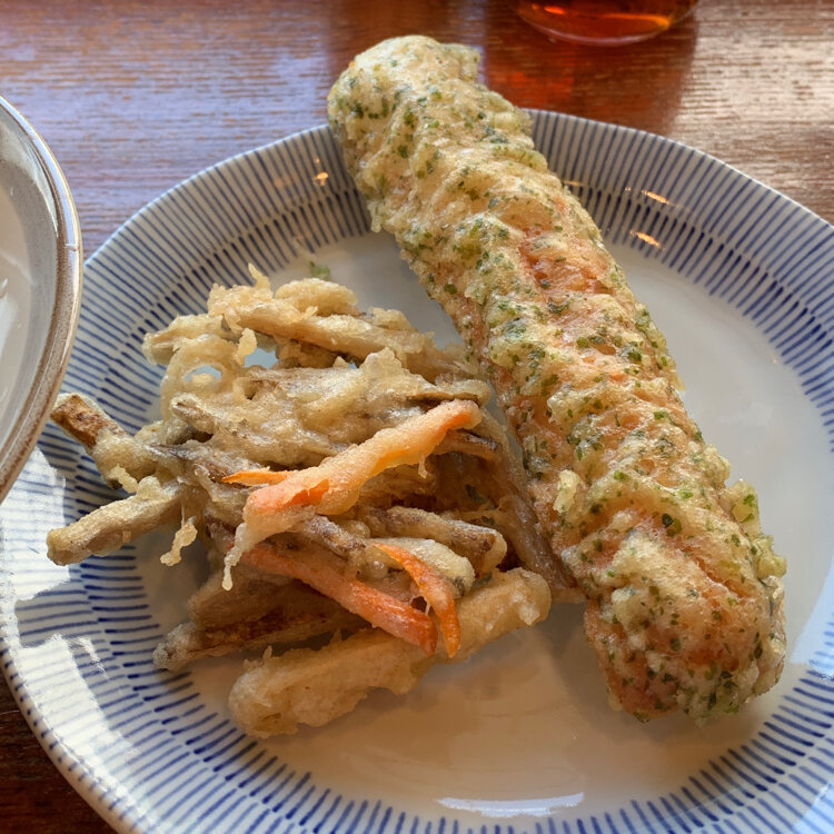 日帰り香川の旅 「中村うどん」  *冷たいうどん ひやひや 小 *冷たいうどん ざる風  大 *天ぷら ちくわ、ゴボウ天 昨日は、お彼岸のお墓参りに日帰りで香川に帰りました。 観光の時間は無いけど、やっぱりおうどんは食べておかないとと、10時の開店直後にお邪魔しました。 こちらは少し細麺ながらコシが有り、いりこの出汁がとても美味しいです。 #中村うどん#日帰り香川の旅#帰省#お墓参り#なかむら(飯山)とは別のお店#ひやひや#ざる風