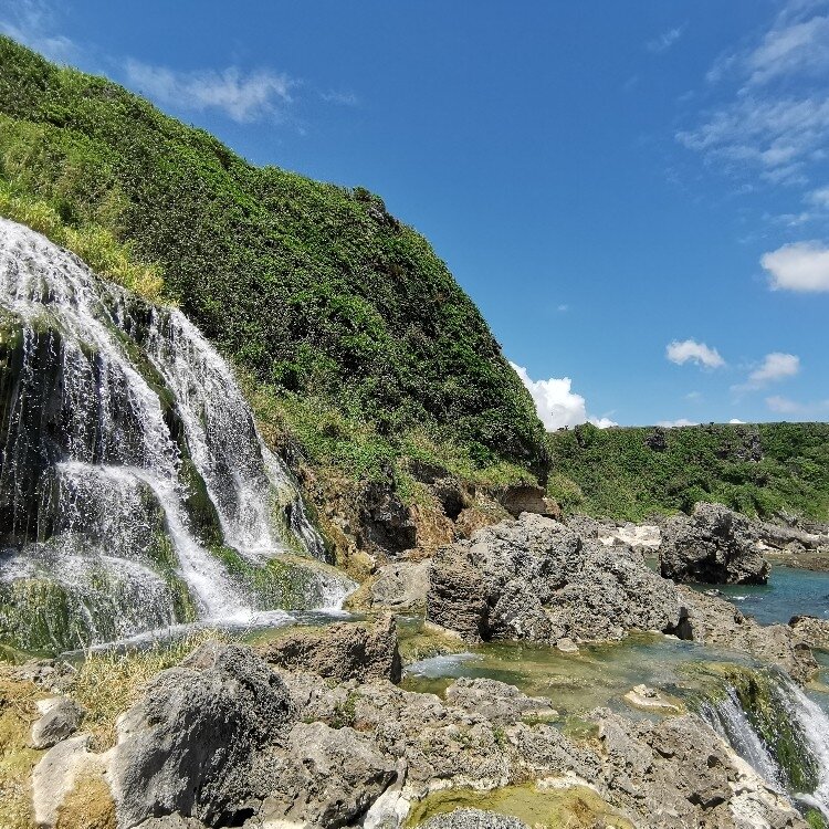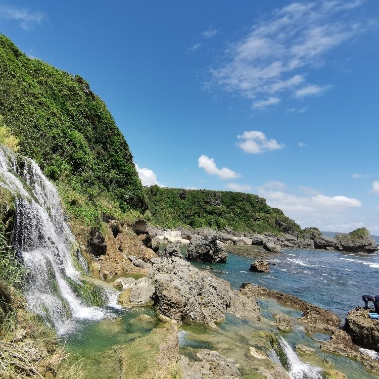 海に直接落ちる滝がありました 釣人ばっかりの場所
