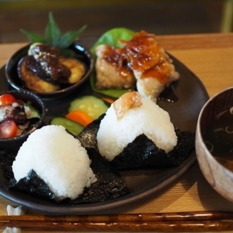 【はまぐり堂 vol.2】 はまぐり堂のランチは月替わり 「9月の浜の昼ごはん」 旬の土地の食材を使ったお手製料理のランチプレート。 おむすびは塩むすび&梅干しのせ ふっくらとしたむすびの加減と塩味もいい塩梅 海苔も磯の香が豊かでとても美味しい ・サバの竜田揚げ 黒酢あんかけ ・タコとミニトマトの自家製アンチョビマリネ ・ナスの田楽 山椒味噌がけ ・天然わかめと豆腐の味噌汁 ・きゅうりと人参のぬか漬け タコ、アンチョビのイワシ、天然わかめはオーナーが目の前の浜で獲ったものですって。 現在は予約が必要で、時間で交代の2部制などの制約もあり。ここまでの道のりも私たちにはちょっとたいへんなんだけど、この空間に身をおくひとときの心地よさ。 食事のあとは、お茶うけと珈琲の時間です。