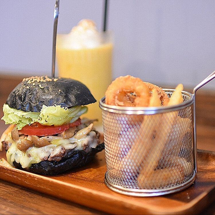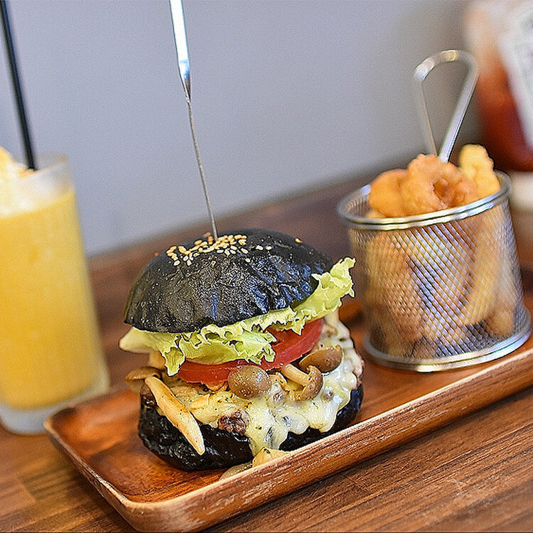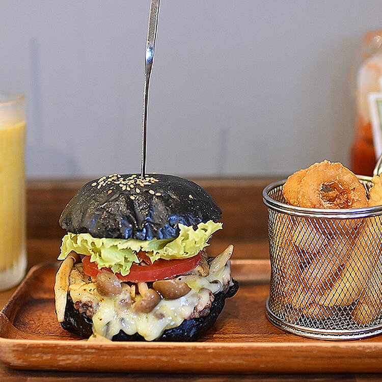 更に、通常のバンズ 又は、竹炭バンズ(数量限定)から選べます🍔