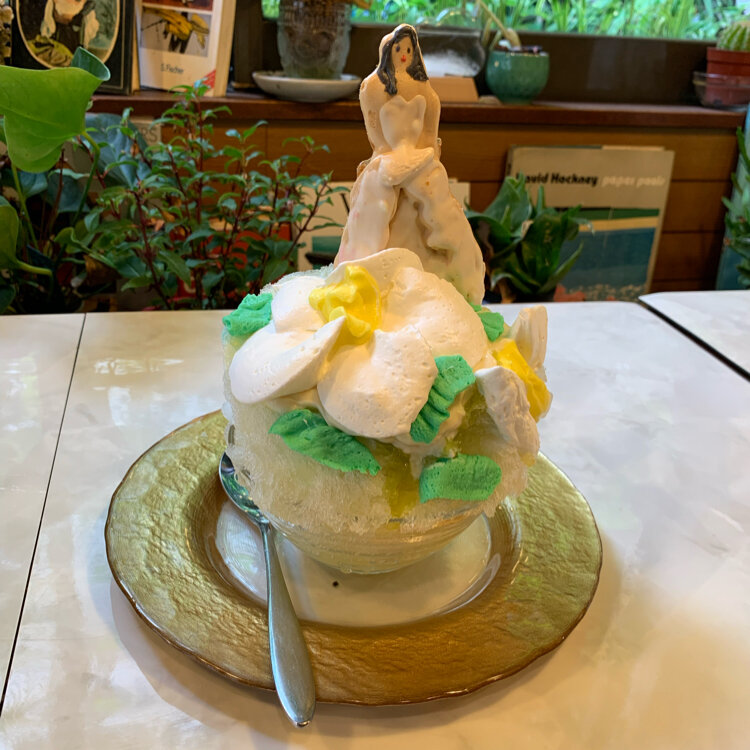 六月メロン🍈🍧 北品川にあるいちょうの木。 まるでウェディングドレスのようなかき氷です🍧 味は、メロンショート🍰🍈のかき氷です。 ちなみに、花嫁さんは、メレンゲでできてます😍 芸術的すぎて食べるのがもったいない💦 土日は完全予約制。平日は、予約なしでも大丈夫です。 #東京 #かき氷