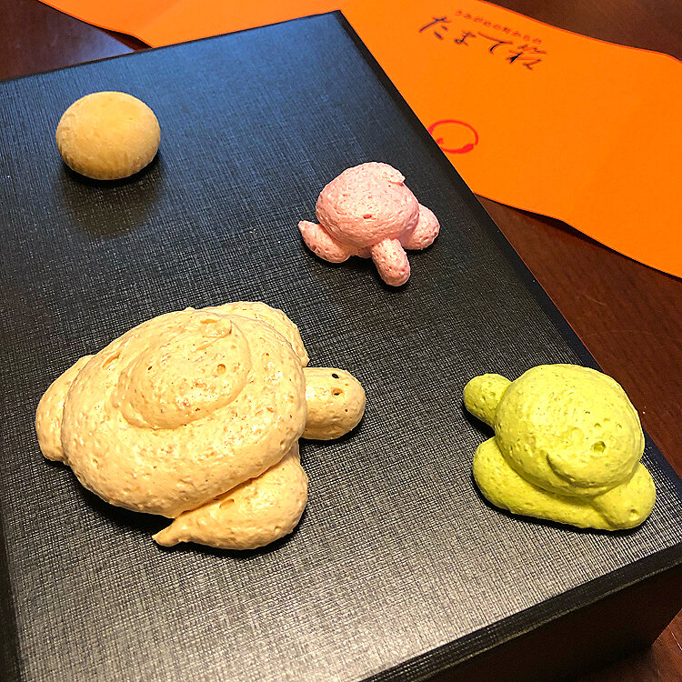 この地で 創業86年を迎えた 菓子店、アジュール昭吾堂さんが手掛ける 海亀をかたどった メレンゲ菓子。