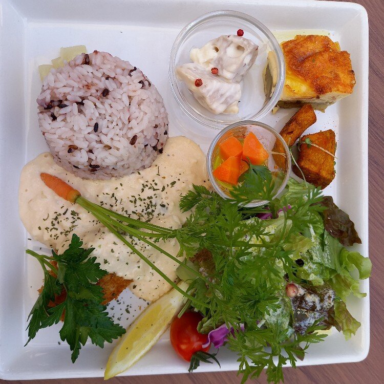 直島 古い建物が立ち並ぶ一角に 看板がかわいく立ってました。 家プロジェクト散策中、メニューに惹かれて入りました。 瀬戸内の食材のランチ! 😋🍴💕