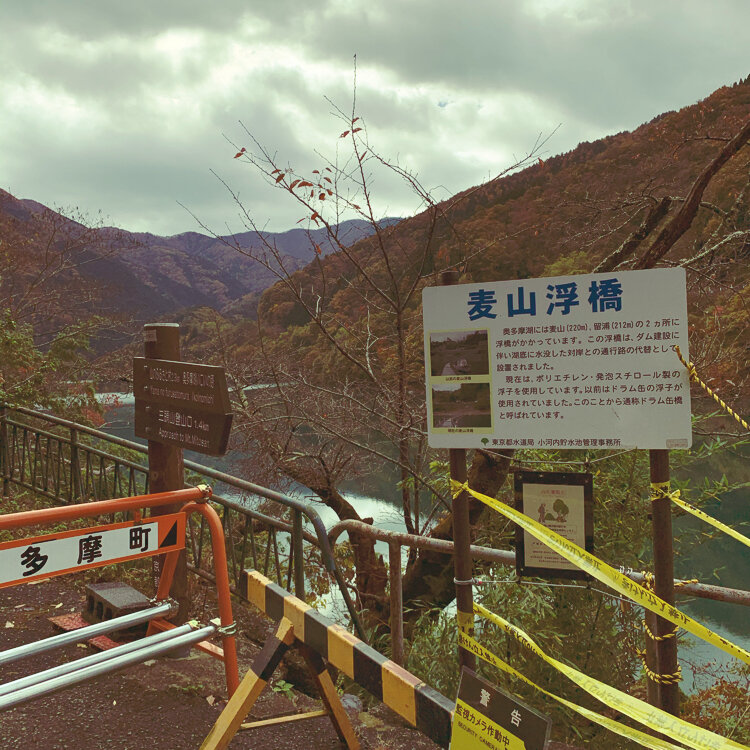 奥多摩湖の奥に浮かぶ通称『ドラム缶橋』と 呼ばれる浮橋。 今年2020年7月から通行止めになってしまったようで 渡ることは出来なかったけど、紅葉🍁と湖との コントラストは楽しめました♪
