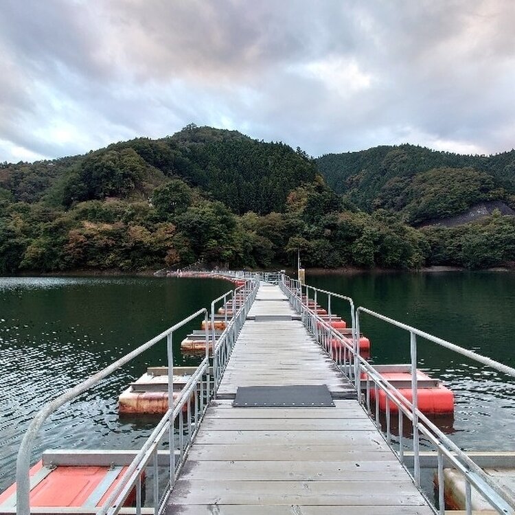 奥多摩湖の麦山浮橋。 ゆらゆらスリルと景色を堪能。 #東京都#奥多摩#奥多摩湖#麦山浮橋