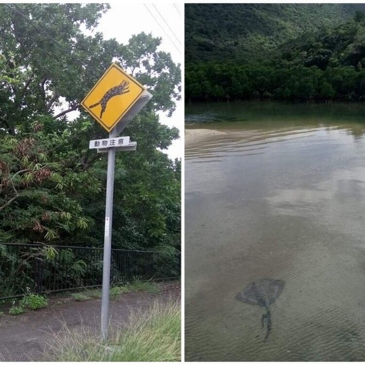 西表島ならではの道路交通標識も…でも、めったに見られないんだろうけど…幻のヤマネコ…エイにも遭遇…