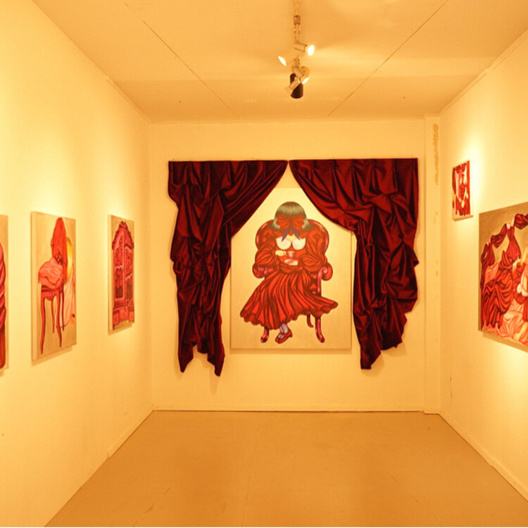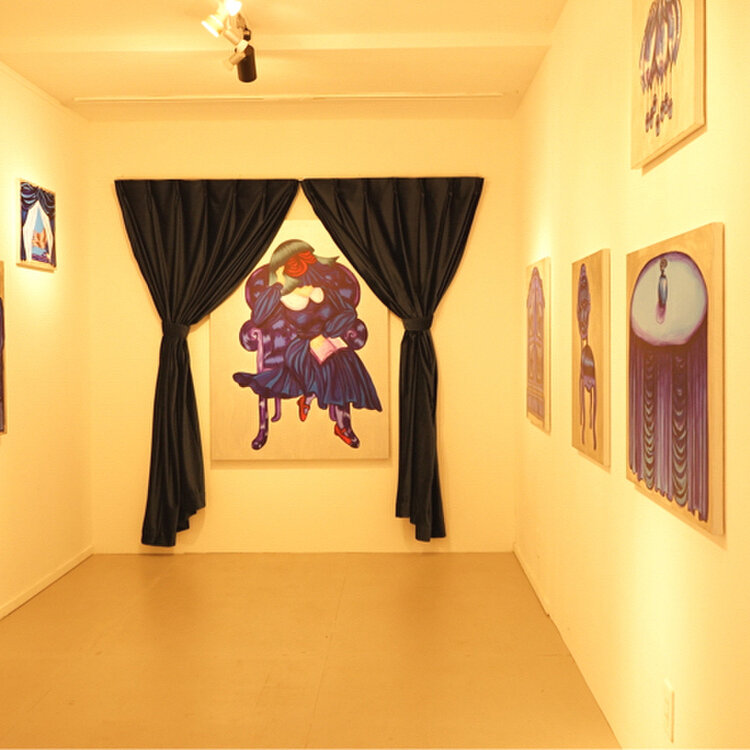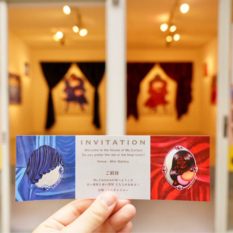 顔をカーテンのドレープで隠したような、正直奇妙な少女の絵…青い部屋と赤い部屋、どちらから先に入るかは私たち鑑賞者の選択です。藤田淑子さんの作品“Ms. Curtain’s Diary”はとても奥深く、表層だけの理解ではうまく掴みきれないアートでした。