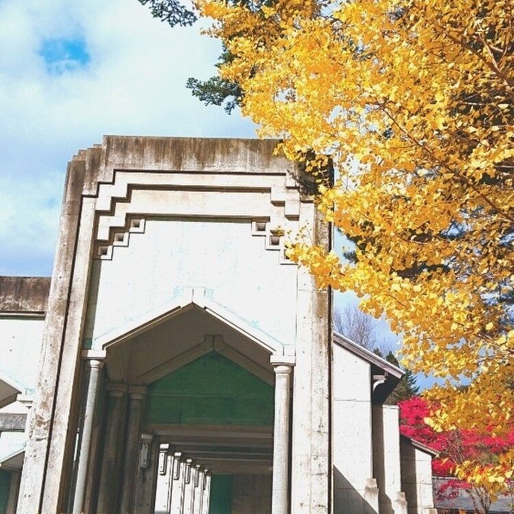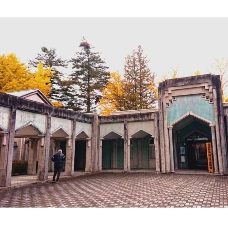 #角館出身の日本画家#優しい画風#素敵な建築#お庭の銀杏も一枚の絵の様#入り口の壁画の迫力#小さな秋#アートと建築#素敵
