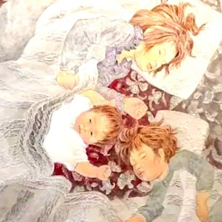 三人の子供の可愛い眠る様子からは規則正しい寝息の共演が聴こえてくるようで、とても素敵な一枚でした。