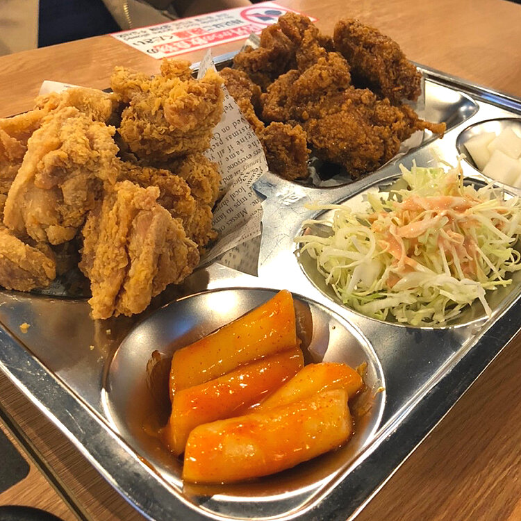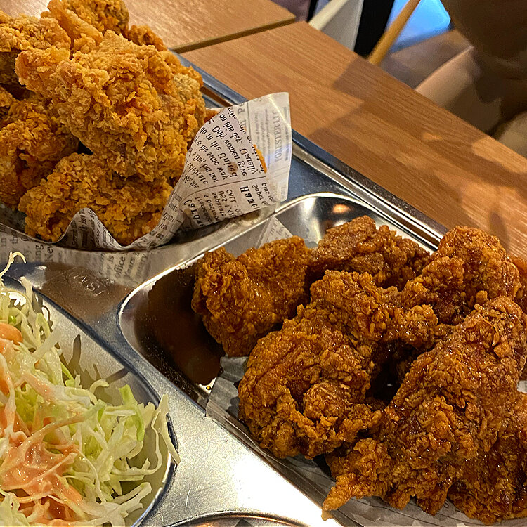 こちら鶴橋の“ネネチキン”も弘大で食べたのと同じ、銀の皿(プレート)で提供されてます。味も弘大と同じ♡とっても美味しかったですよ❣️
