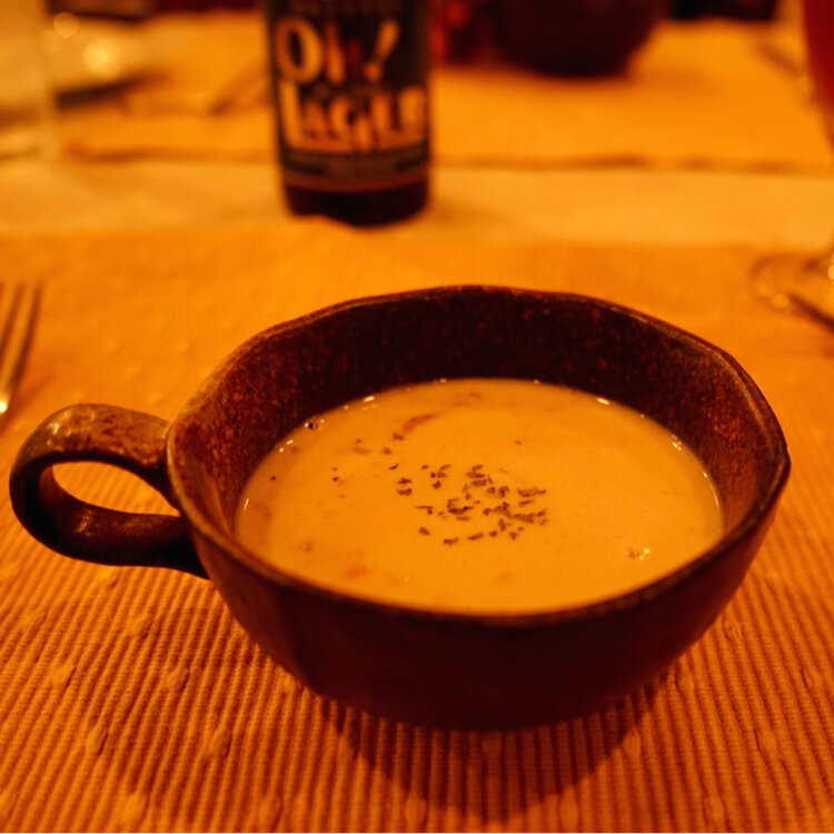 冷たい雨になりそうな夜にチーズの芳醇な香りと、あったかいチーズにほっこり、あたたかいオーナーご夫妻とあたたかい雰囲気のダイニングルームにもほっこりの夜ごはんでした。