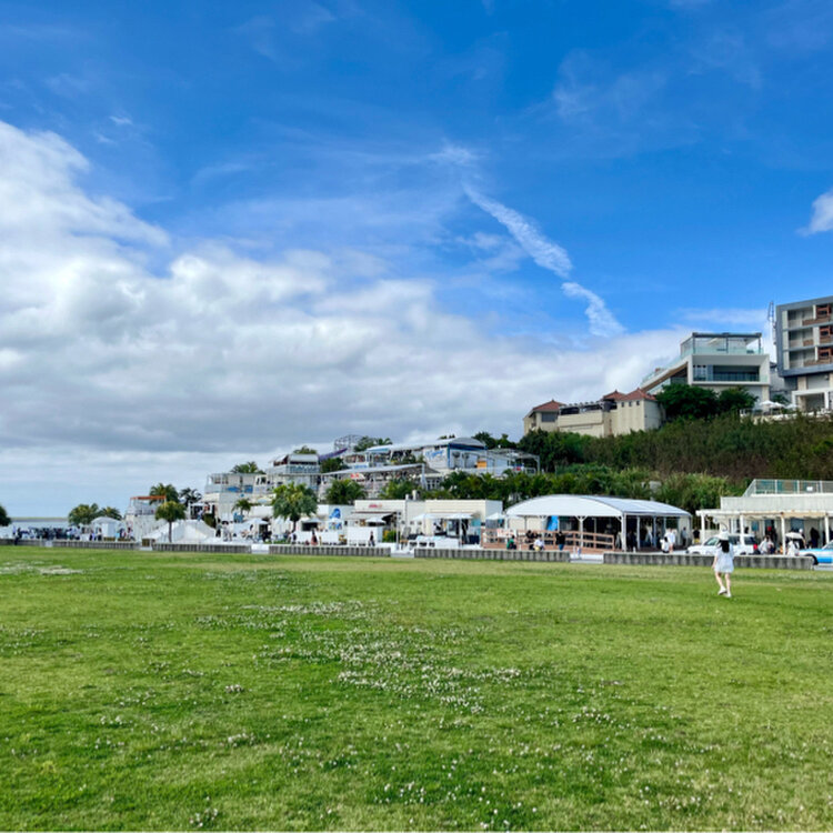 真っ白な建物群と青い海のコントラストがとても綺麗なお土産屋さん、カフェ、ご飯屋さんと色々なお店が集まった複合施設です。