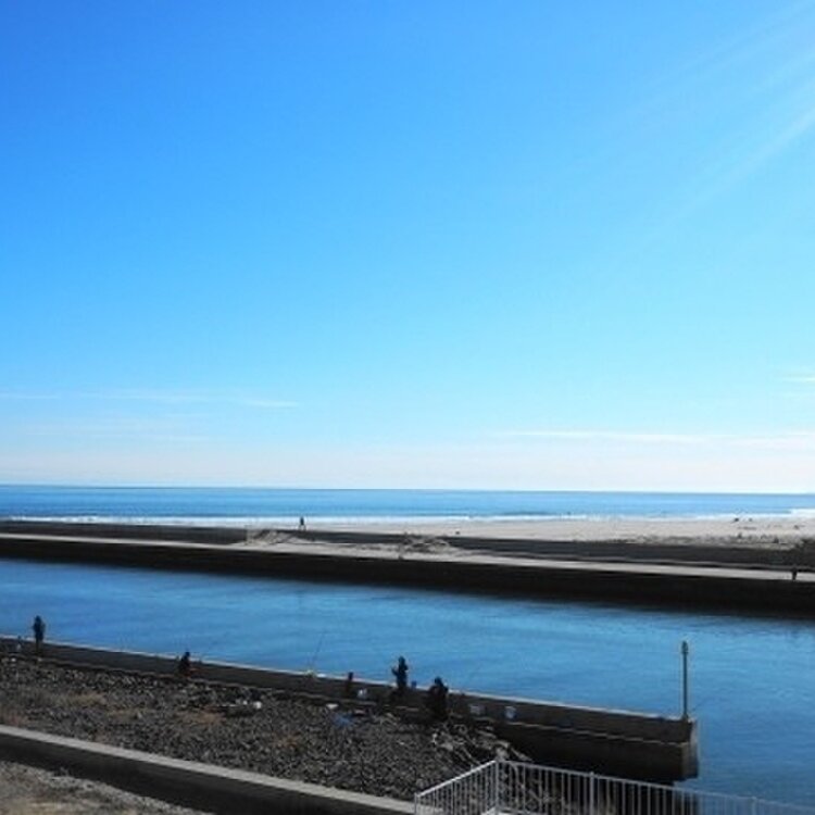 目の前にある堤防を登れば海がみえる。