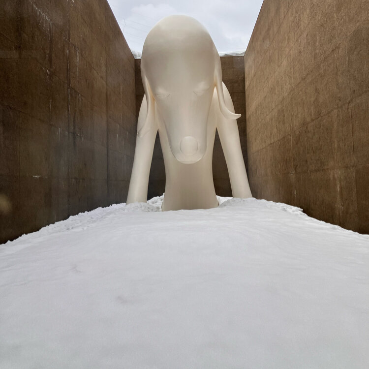 キュン❤️パスで東北旅⑩ 旅2日目、青森を満喫します💙 2年前のキュンパスに続いて、またまた来ました 青森県立美術館🤍 2年振りに「あおもり犬」と再会です🐶 2年前来た時は、ワンちゃんのゴハン皿が 見えてましたが…今回はお皿が埋もれてるー😳 雪が深ーく積もっていました❄️❄️ 前回とは変わってる展示作品もあり、ゆっくりと アート鑑賞を楽しみました🖼️ 美術館までのアクセスは…ちゃんとバスの時刻を 調べておくとバス路線があります🚍☺️ #キュンパス #JR東日本 #青森県立美術館 #あおもり犬 #奈良美智