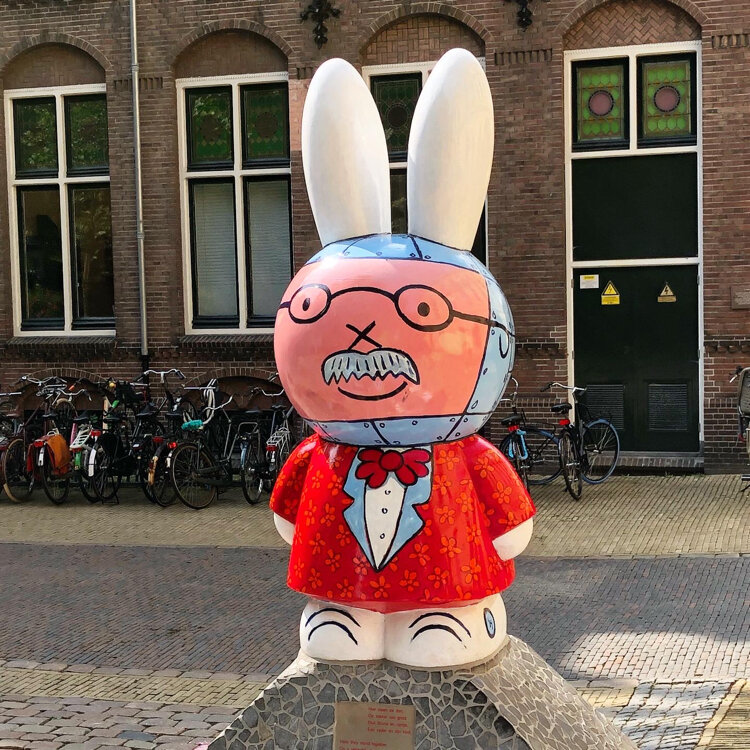 旅の思い出✈︎ 街にミッフィーが溢れるオランダ🇳🇱 アムステルダムとユトレヒト🇳🇱 ミッフィー像(1枚目)を裏から見ると、作者のブルーナさん(2枚目)になっています🐰