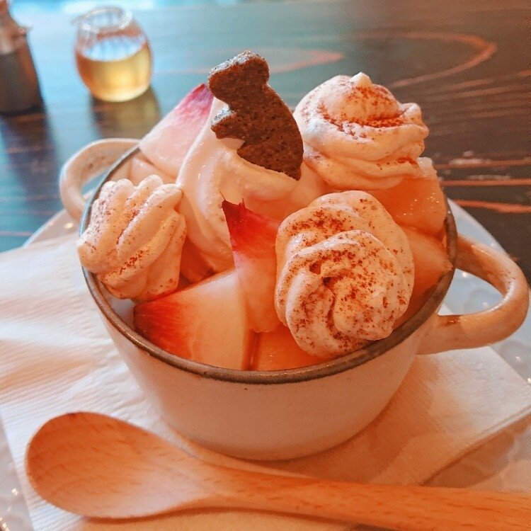 パフェ上にはカフェのマスコットのクマさんのクッキーが。🧸