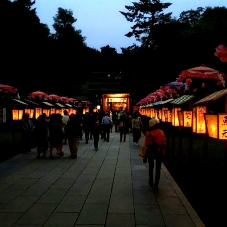 暗くなり、神社に戻ると行灯に火が灯り、情緒ある雰囲気になっていました。✴️✨