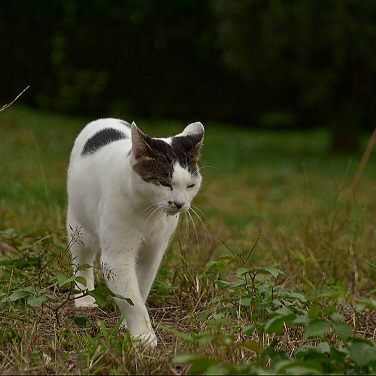 4kioさん こんにちは♪ 後ろの鬱蒼とした茂みの中から 一点を見つめながら颯爽と登場したにゃんこ🐈‍⬛ その貫禄に思わずこちらが立ち止まってしまいました😆