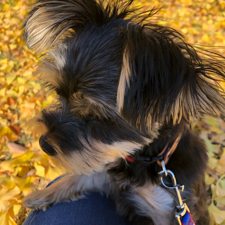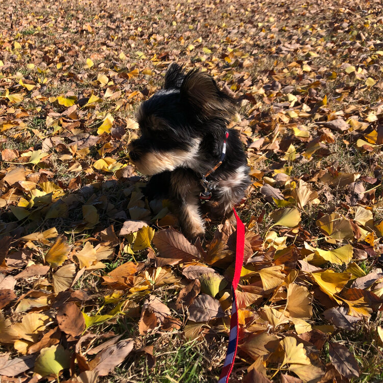 銀杏の木と はじめての広い所でお散歩 葉っぱを追いかけて楽しそうでした。