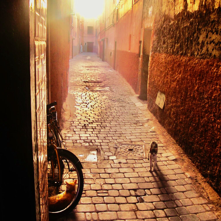 旅先案にゃい猫 モロッコ フェズの旧市街の夕方。 945?もの小径でつくられた世界遺産。 複雑な街並みから「世界一の迷宮都市」とも呼ばれています。 ホントに案内してほしかった。笑 いつかまた行ける日を楽しみに。。。