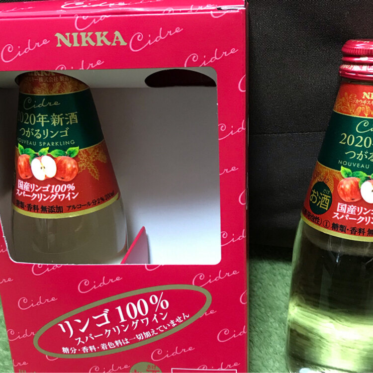 #アップルスナック#コンビニの飴#スパークリングワイン(つがるリンゴ)