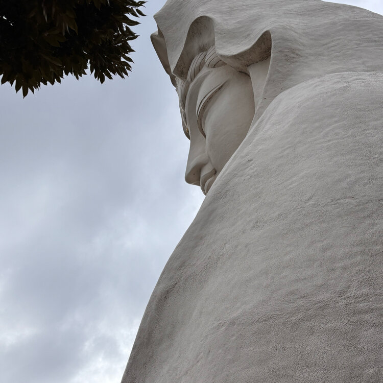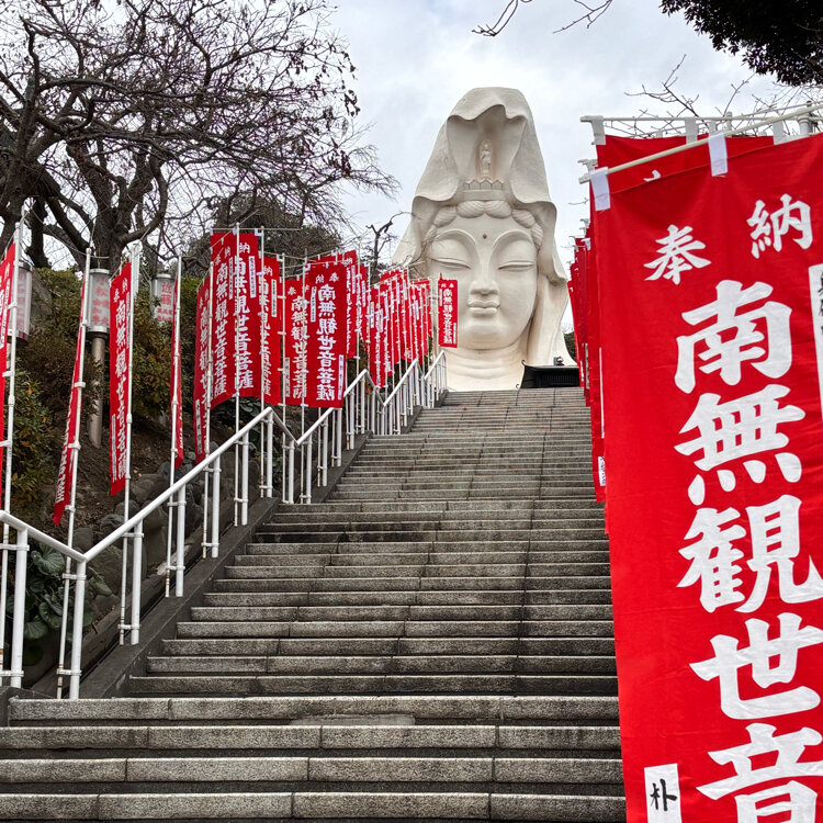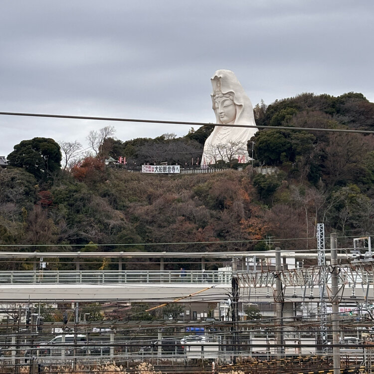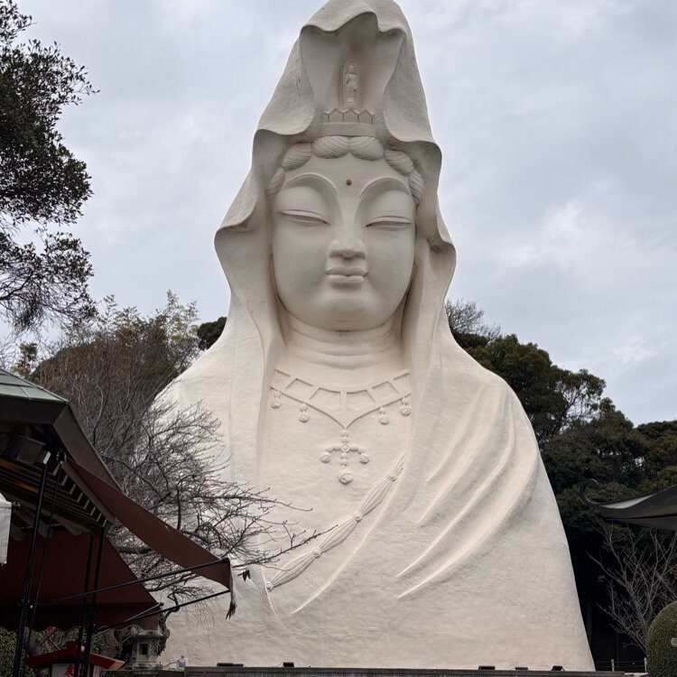 遠くから見る事はありましたが いよいよ訪問 胸までだったのですね 遠景がシュールで好きです こんな三角コーン初めて見ました! #開運旅 #観音様#大船
