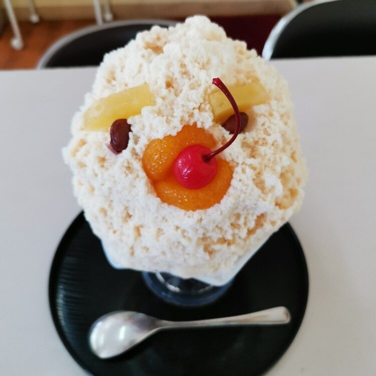 生姜焼きもあるし、沖縄そばもある でも一番人気は白熊! おばあが仕上げるから 毎回顔が違う 俺のはサクランボをおしゃれにくわえてる。 友達のはサクランボ食ってるやつでした