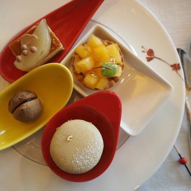 < アフター万博巡り > ② 「Masahiko Ozumi Paris」 *モンブラン セーヌ ・ショコラ *ザブトンモンブラン ・ジャポネ 抹茶 *ピスタチオ サバン 「世界のミャクミャク展」の後、大阪市役所を目指し、大阪メトロで淀屋橋まで行きました。 ちょこっと寄り道して、ザブトンモンブランで有名な「Masahiko Ozumi Paris」さんの淀屋橋店へ。 ちゃんと持ち帰る自信が無く、阪急百貨店で何度かスルーしたのですか、淀屋橋店ではイートイン出来ると聞き、行って来ました。 人気店のため、ケーキが売り切れたら嫌なので、ランチを食べる前に行きましたが5、6人並んでいただけでした。 ただ、前の方々が皆さん、ケーキを4箱とか5箱とかびっくりする数を買っていて、ショーケースが空になったらどうしようとドキドキでした。 心配する事なく、奥からしっかり補充され、逆に食べてみたいケーキが色々有り過ぎて、迷いました。 娘と相談して、淀屋橋店限定の「モンブラン セーヌ ショコラ」と「ザブトンモンブランの抹茶」と、クリスマスらしいケーキの中から「ピスタチオ サバン」を選びシェアしました。 カフェと言うよりイートインコーナーと言う感じなので、コーヒーはカップandソーサーではなく、紙コップの提供で、フォークも使い捨てタイプだったので、断面が切り難く、綺麗にお見せ出来ないのが残念です。 もちろんケーキはどれも美味しくて大満足でした。 クッキーや焼き菓子もお洒落で美味しそうで、お遣い物で詰め合わせを送りましたが、凄く美味しかったと言って頂きました。 #アフター万博#Masahiko Ozumi Paris#淀屋橋店#モンブラン セーヌ#ザブトンモンブラン#ピスタチオ サバン#私のことりっぷ旅