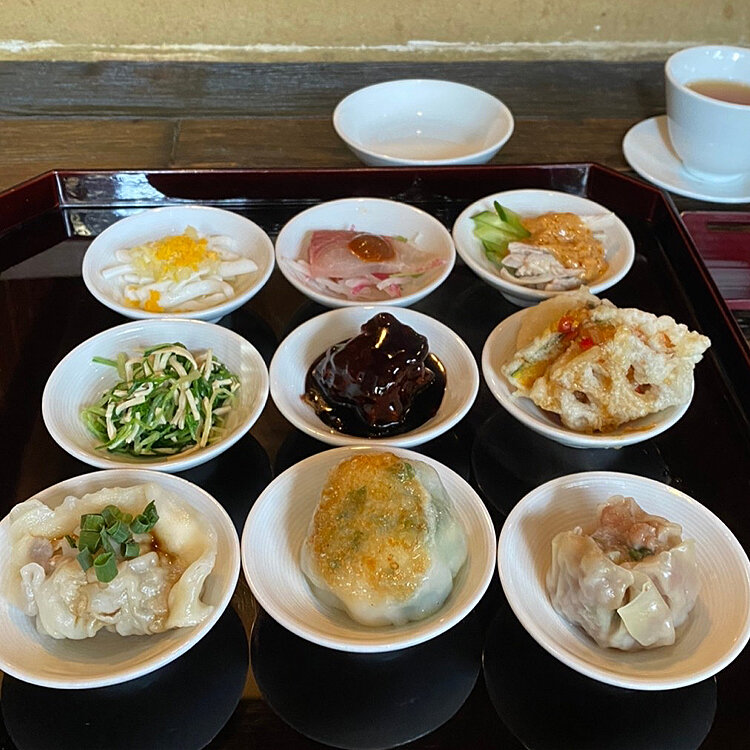 豆皿に盛られた料理は一皿ずつ丁寧に手づくりされており、特に中央の黒酢の酢豚は絶品!豚の三枚肉が柔らかく、お肉だけなのに酢豚なのよ〜😍