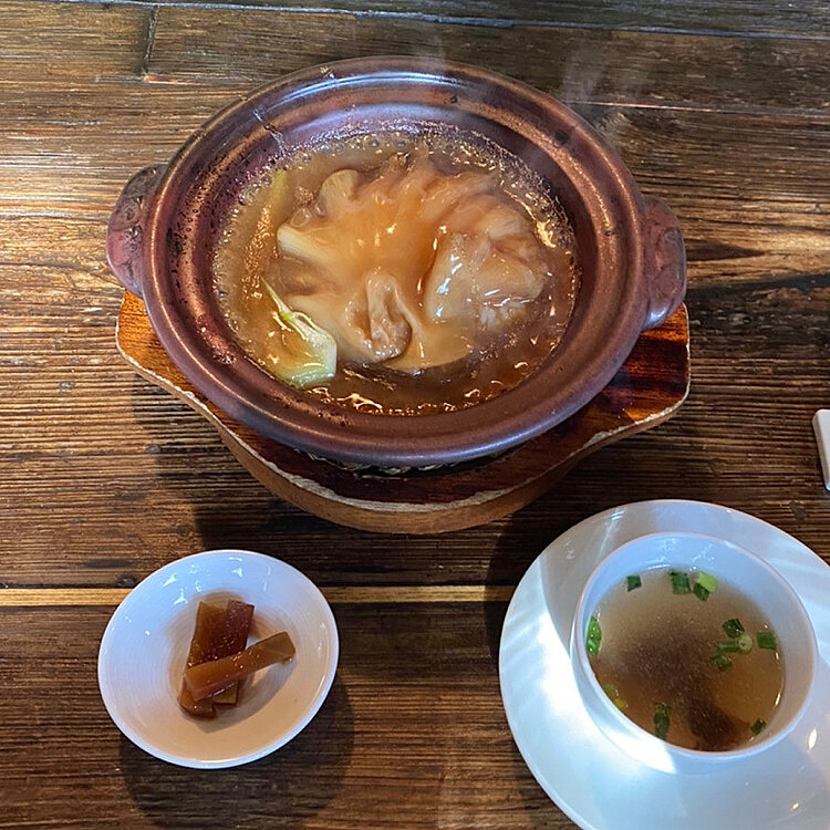 姿煮はグツグツ煮立った状態で運ばれてきます。とろっとろのフカヒレと土鍋ごはんは幸せの味〜😍