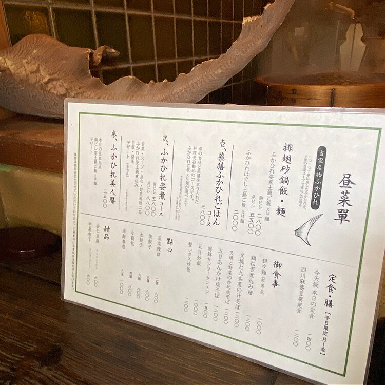 入口の暖簾にも描かれている「フカヒレ」を食べに行ってきました。