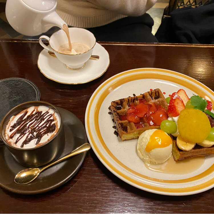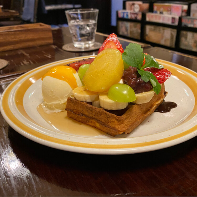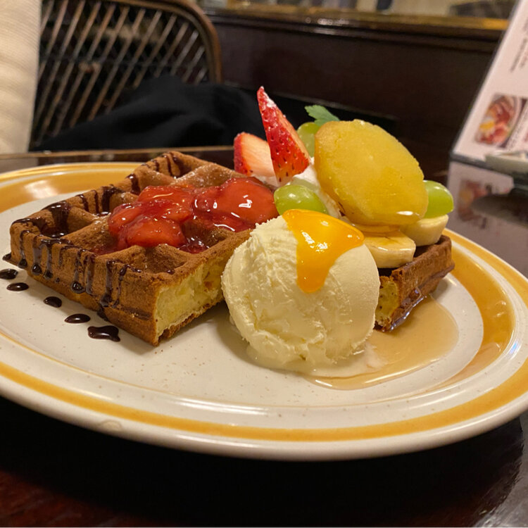 天気は良いけど、風があって寒い午後 我慢出来ずに立ち寄ったのは 山形市七日町にあるカフェ、シャンソン物語 とてもシックで大人な喫茶店☕️ 土曜日と祝日限定のにこにこワッフルプレート🍓 フルーツ、焼き芋、あんこにアイスクリームと 盛り沢山な贅沢なワッフル✨ とても居心地良くて気に入っちゃいました☺️