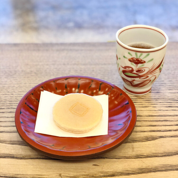 上品な甘さの白餡に山椒の実をしのばせたお菓子と京番茶
