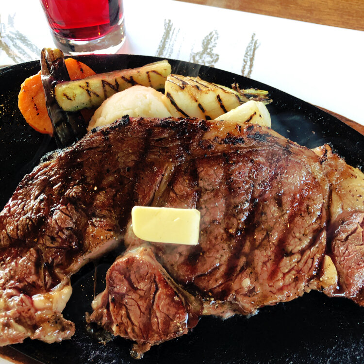 ランチのステーキ😊ボリューム満点でらいすがたべきれず!