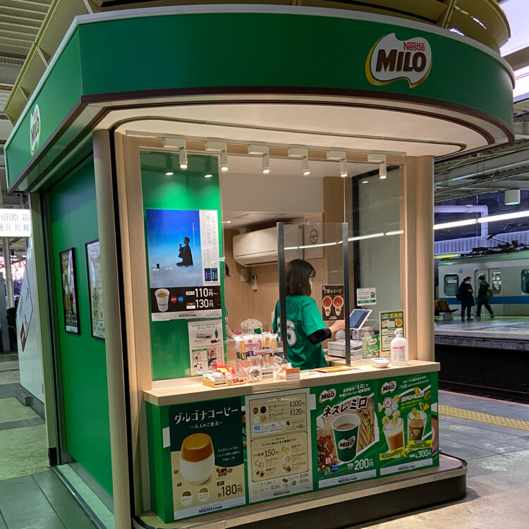 小田急線町田駅の下りホームにミロスタンドが登場。久しぶりのミロ、美味しい、懐かしい… 普段はネスカフェスタンドで、ミロスタンドは4月30日までの期間限定だそう。 #ミロスタンド #小田急線町田駅