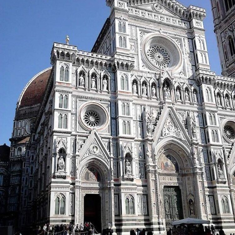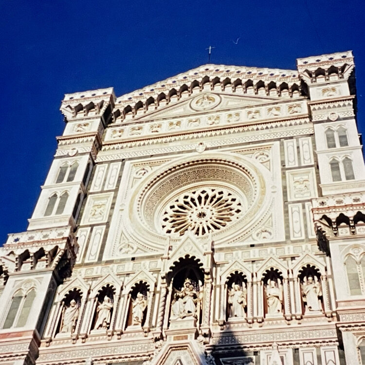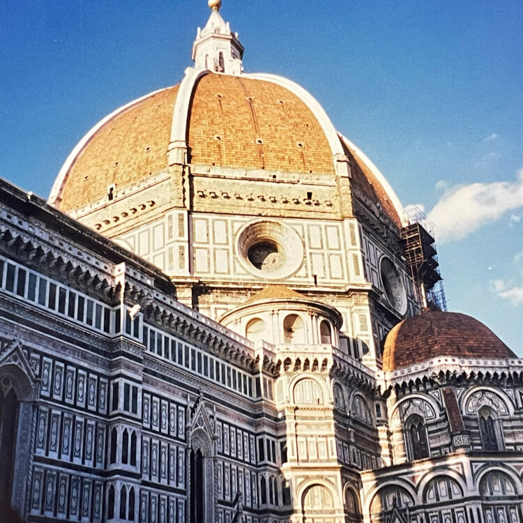 【イタリア🇮🇹旅行⑤】 フィレンツェといえばこの大聖堂が思い浮かぶと思います。 サンタ・マリア・デル・フィオーレ大聖堂 「花の聖母マリア」という意味だそうです。 . 建築史上最も美しいと今も讃え続けられるオレンジ色の丸いドーム状の屋根「クーポラ」が、フィレンツェの街並みを見下ろす姿は、神秘的かつ、荘厳な雰囲気。まさにフィレンツェを象徴する建物です。 13世紀末から始まった建築の完成は、工事自体が放置されていた期間も含めて約600年もかかったのだとか! 1887年、正面のファサード(3枚目)の完成とともに、完全形となったそうです。 意外とカラフルだけど、総大理石…😳…すごい❣️ . とにかく荘厳で大きいので写真に収めるのが大変です笑 1999/04/30 #クラシカルな街 #新婚旅行 #思い出 #イタリア #25年前