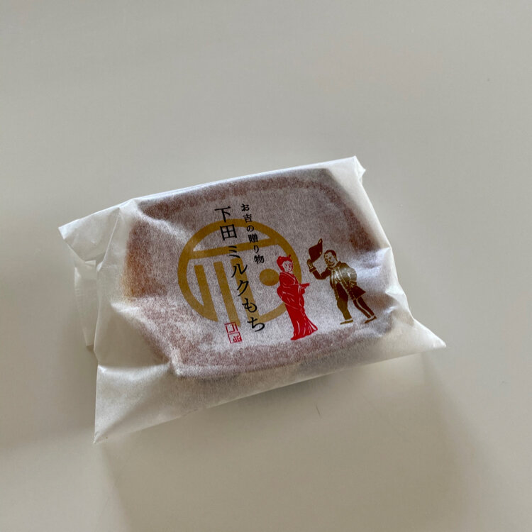 開国の街 下田の歴史物語がモチーフで、ミルク風味で中に大納言小豆が入ったもちもち食感のお菓子。