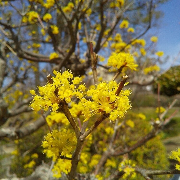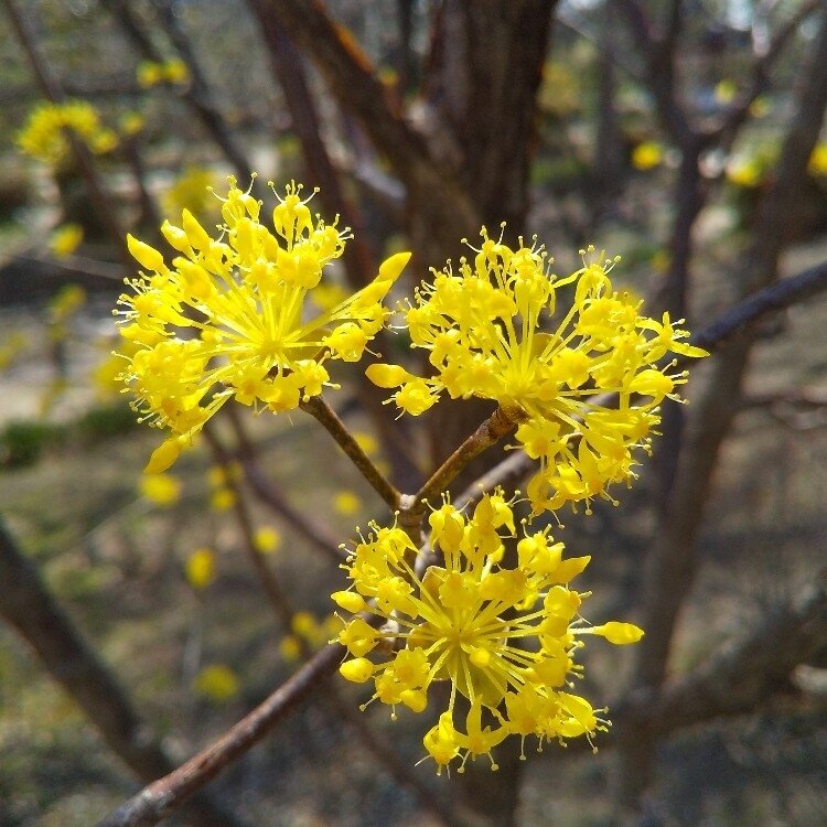 サンシュユの花を夢中になって撮っていると、近くを通りかかったおじいさんがサンシュユを見て、