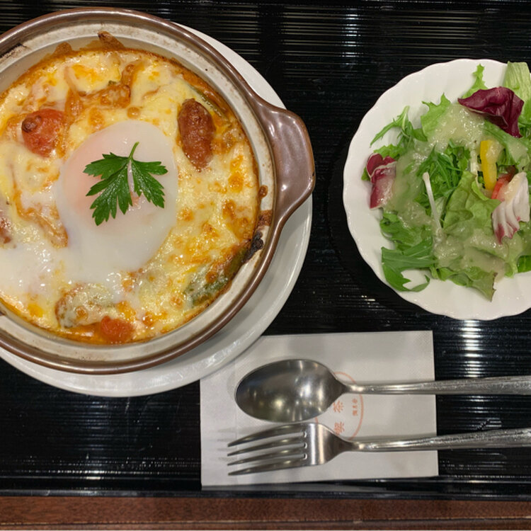 焼きナポリタン🍝 温玉とチーズが最強!!