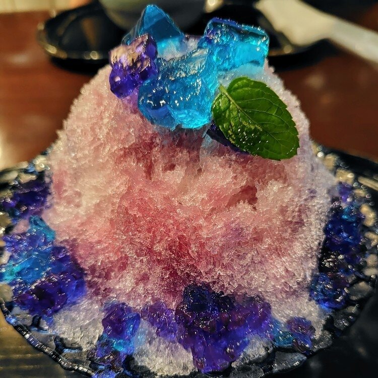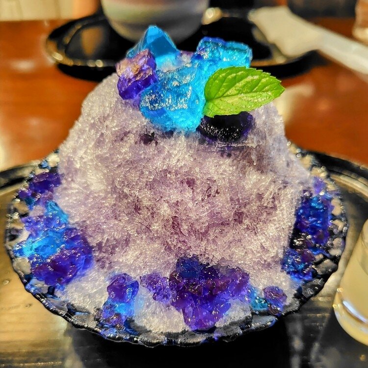 レモン果汁で色が変わる 紫陽花のかき氷😆
