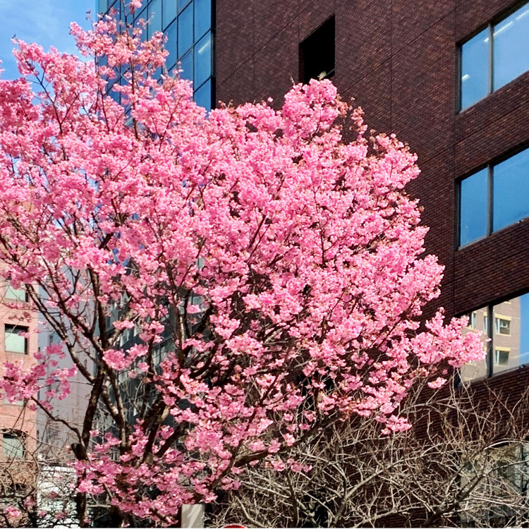 ピンクのふわっとしたポンポンとグリーンの葉っぱが桜餅みたいでかわいいです。公園などではなくてもたくさんの木や花が通りを明るくしていて、横浜の春は本当に鮮やかだなぁと思います。
