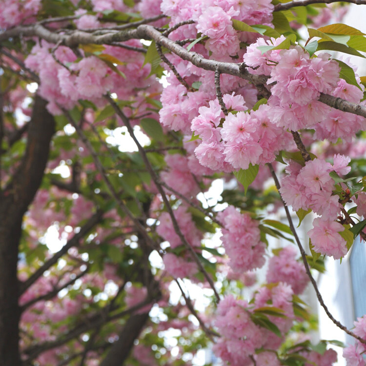 横浜、関内桜通りにはボリュームのある見事な八重桜の木が並んでいて、先週通ったときにまさに満開でした。