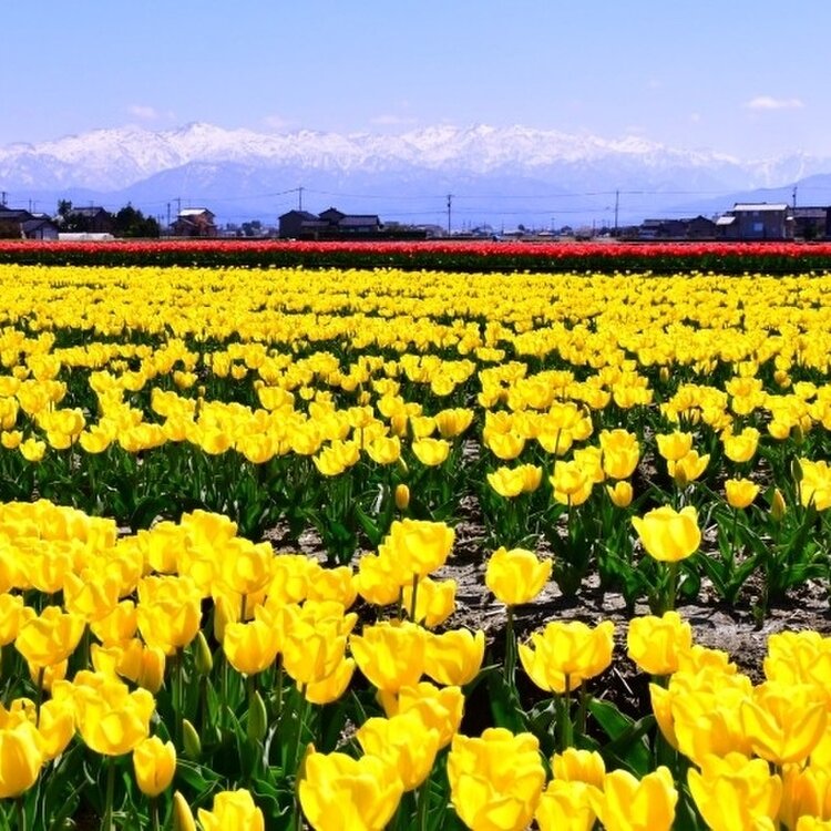 私が訪れたのは、まだイベントが始まる前でしたが、北アルプスを背景に広がるチューリップ畑を見ることが出来ました!