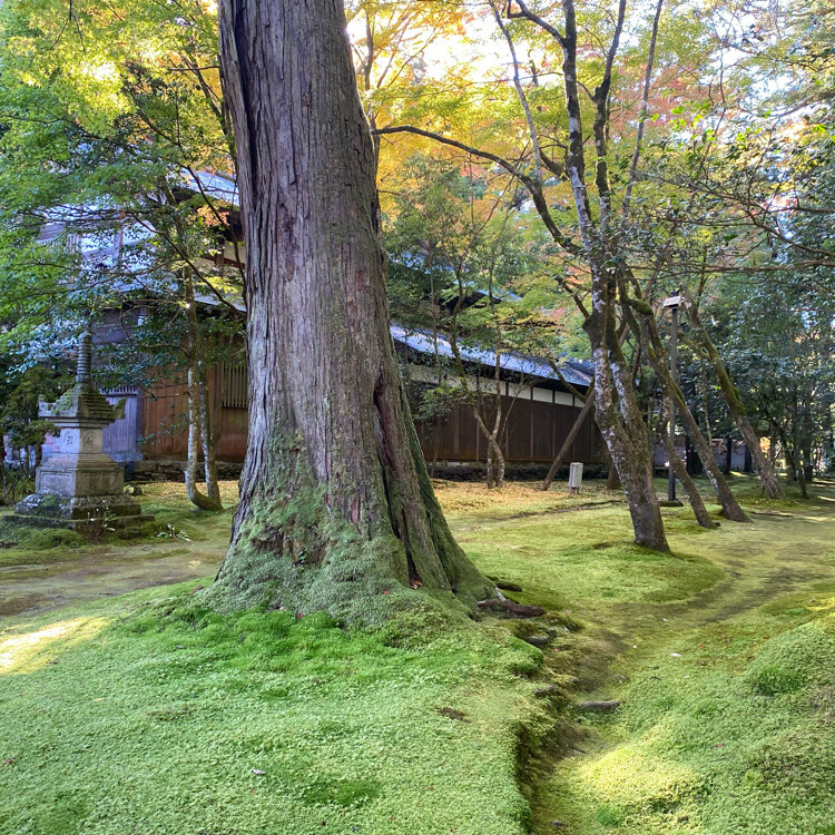 王殿をでると杉並木。参道にはあちこちに椿や灯篭、苔などが楽しめて絵画の世界のようです。