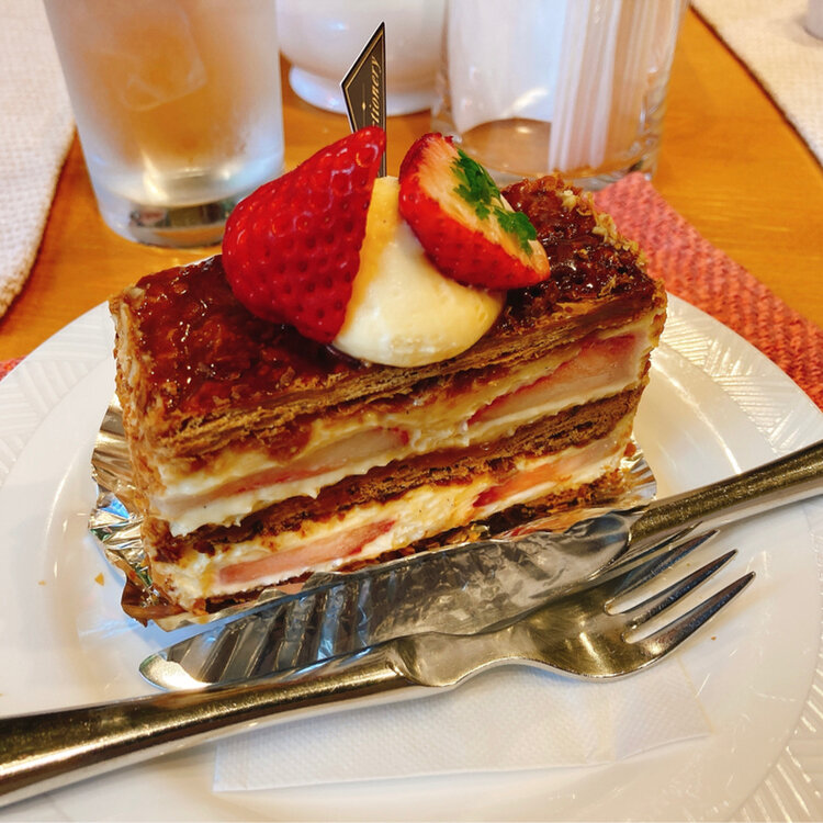 今回は苺のミルフィーユでお茶してきました。予算はケーキ&ドリンクで1000円ちょっと、ちゃんとしたカフェスペースがあるので納得のお値段。
