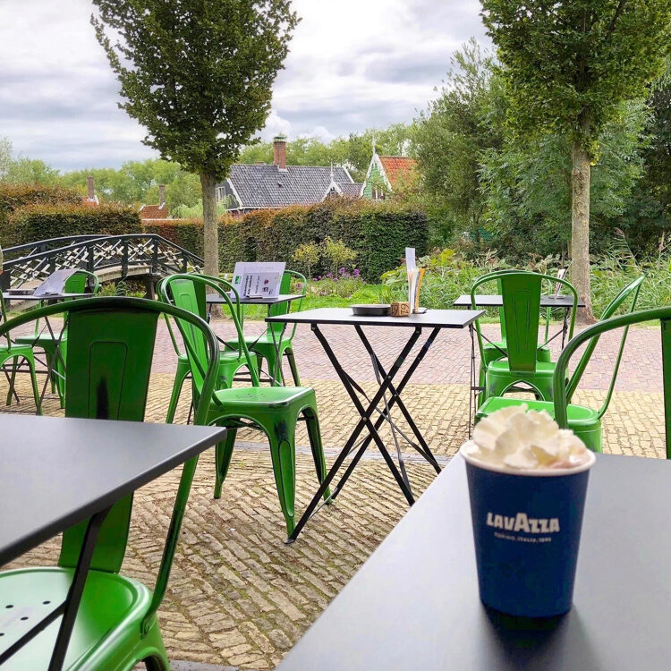 旅の思い出✈︎ オランダ🇳🇱ザーンセスカンスでカフェタイム☕️ アムステルダム中央駅から列車で15分で行かれるかわいい村🌳 いろんな種類のチーズを試食しながら買えるのが楽しい🧀😊