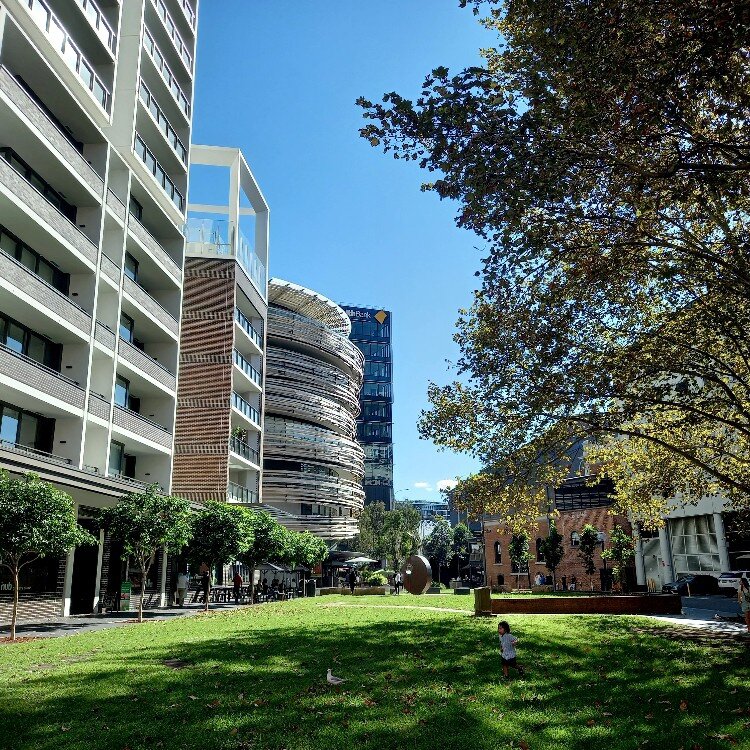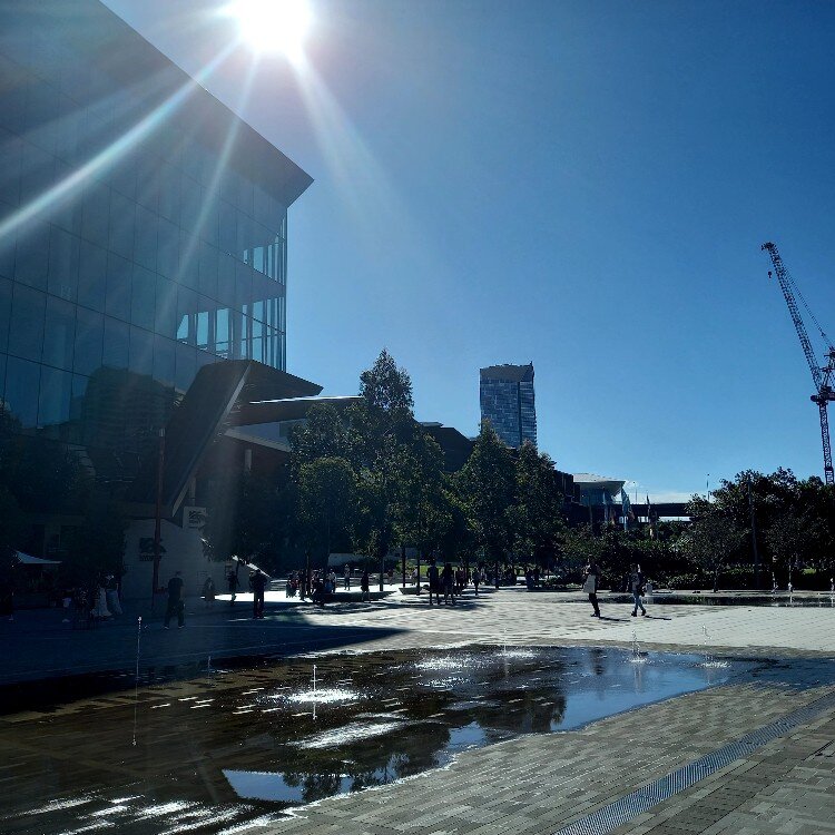 公園では家族連れもたくさんいて、噴水の広場では子供達が水遊びをして楽しんでます…