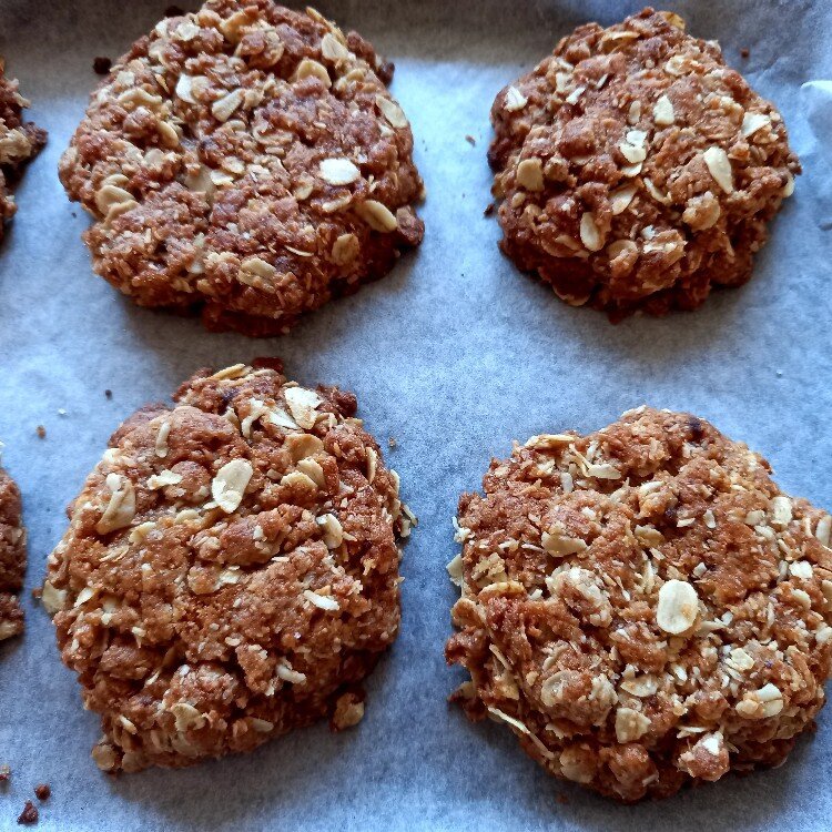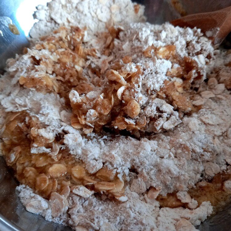 オーツとココナッツ、薄力粉、ブラウンシュガーの粉類に、溶かしバターに重曹を溶かした物を混ぜ手焼くだけ❢