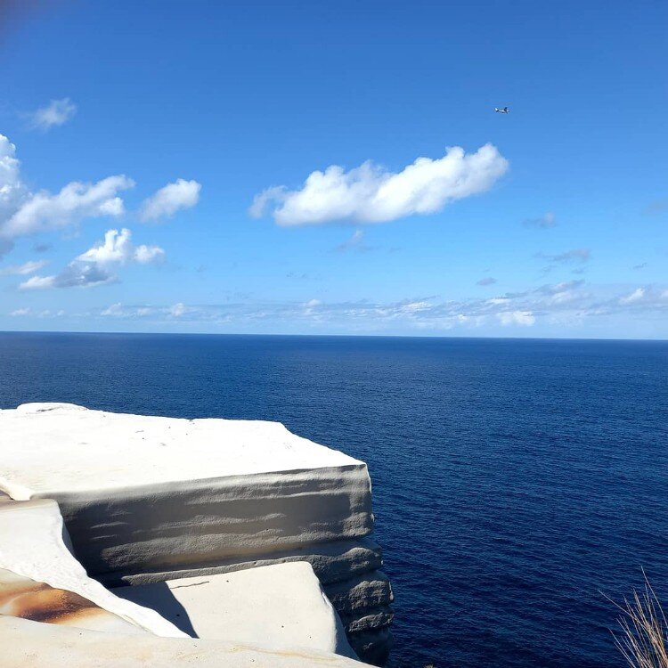 海を見ながら青空の下でビスケットを食べてると空軍の飛行機が✈